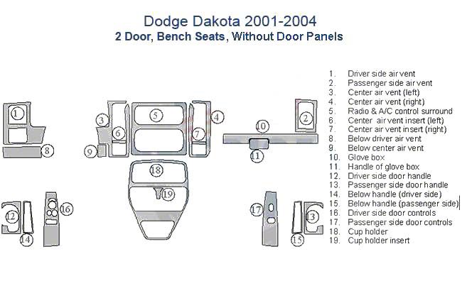 High quality dash trim kit in Zebra Rosewood finish. This is flat two-dimensional (not molded) dash trim kit. It is not a replacement of your existing dashboard. The parts are installed on top of the corresponding areas of vehicle dashboard. Compatible only with Dodge Dakota 2001 2002 2003 2004 2 Doors, Bench Seats.