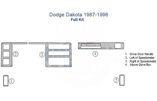 High quality dash trim kit in Zebra Rosewood finish. This is flat two-dimensional (not molded) dash trim kit. It is not a replacement of your existing dashboard. The parts are installed on top of the corresponding areas of vehicle dashboard. Compatible only with Dodge Dakota 1987 1988 1989 1990 1991 1992 1993 1994 1995 1996.