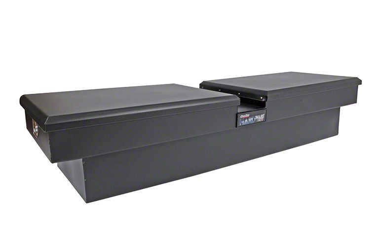 Dee Zee Tool Box - Hardware Series Double Lid (Gull Wing) Crossover. Constructed of durable 20-gauge steel. Protected by texture black NRT(TM) (No Rust Technology) rust inhibitor powder coat finish. Crown style lid with a full pan double-V stiffener for superior rigidity. Other features: lockable stainless steel paddle handles, dampened gas shocks, closed cell foam gasket, and self-adjusting strikers. Removable plastic tool tray to help keep small items organized.
