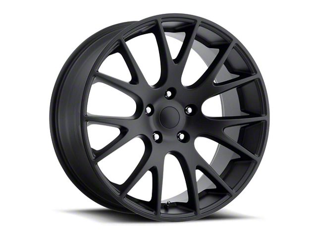 The 22x10 Hellcat Replica Satin Black 5-Lug Wheel; 22x10; 25.40mm Offset is completed in a high-quality satin black finish, which will be sure to turn heads. For added durability and appearance, there is a durable clear coat that withstands the rigors of the road.