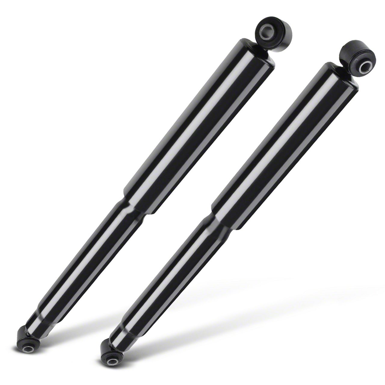 Construction and Appearance. Manufactured with high-quality materials, these shock absorbers feature a black finish that offers corrosion resistance and a sleek look. They include a dust cover to protect critical components and are engineered to endure impacts and wear over time.