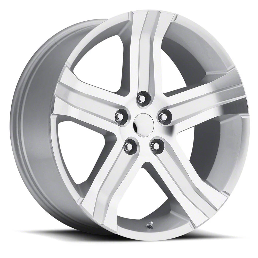 The 24x10 RT Replica Silver Machine Face 5-Lug Wheel; 24x10; 25mm Offset is completed in a high-quality silver machined face, which is sure to turn heads. There is a durable clear coat for extra protection and enhanced appearance that can withstand the rigors of the road.