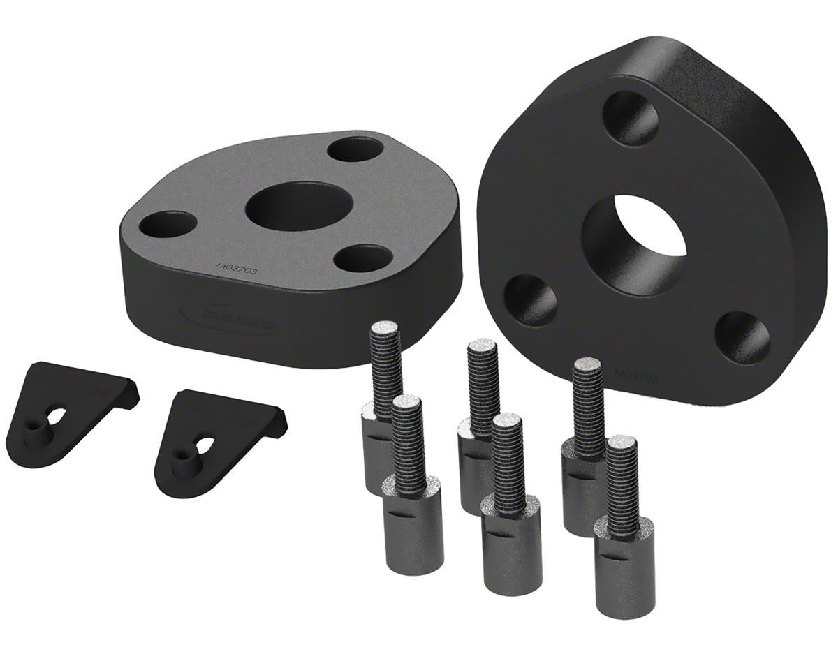 Construction and Appearance. Featuring a textured black finish, this leveling kit is built to withstand the demands of rugged environments while seamlessly blending with the truck's aesthetic. Constructed for durability, it ensures consistent leveling without compromising performance or stability.