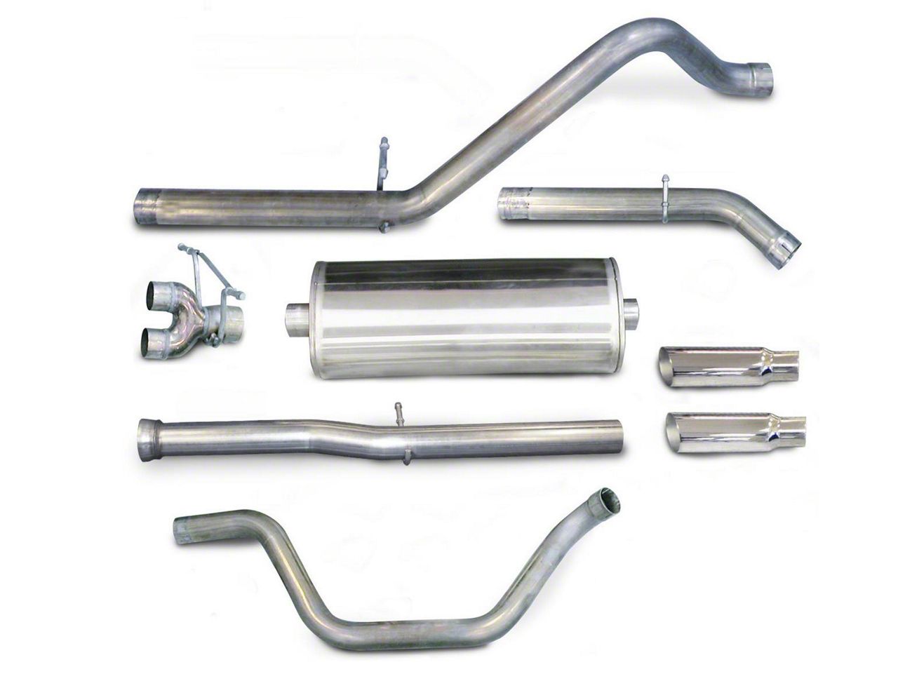 Aggressive Rumble with No Drone. Give your factory exhaust an upgrade with a dB Performance by Corsa 3 in. Sport Cat-Back Exhaust w/ Polished Tips — Split Rear Exit. This exhaust system delivers an aggressive, deep sound that will also eliminate that irritating drone sound heard in the cab during cruising speeds, revealing that beefy sound that your truck is meant to have.
