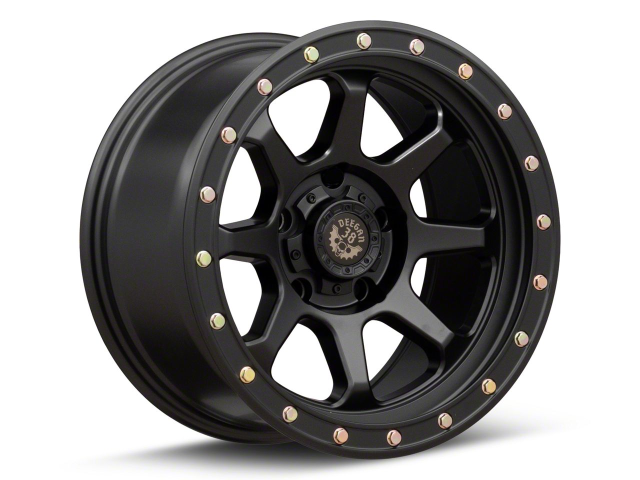 Satin Black Finish. This Deegan 38 by Mammoth Wheel is completed in a high quality black finish for an aggressive appearance that looks great on or off-road. For added protection and durability, this Wheel features a satin clear coat that is tough enough to stand up against the hazards of everyday driving - including road chips and pitting.