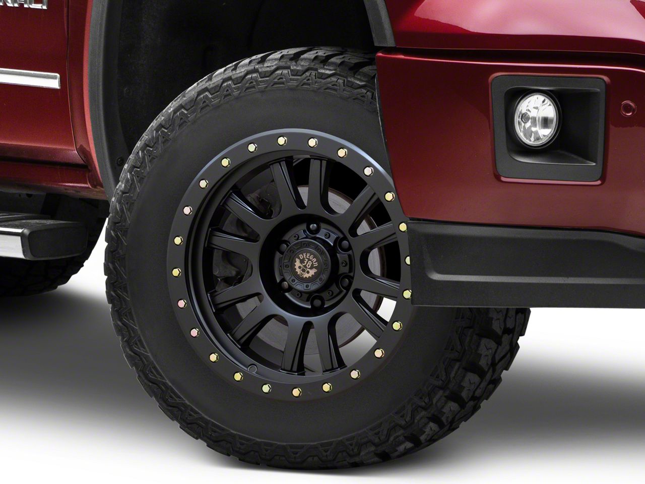 Deegan 38 by Mammoth Ghost Rider Series Wheel. The Deegan 38 by Mammoth Ghost Rider Series Wheel features a bold twelve spoke design with a faux beadlock ring that features zinc plated hardware. This Deegan 38 by Mammoth Wheel is perfectly suited for both on and off-road applications. A Deegan 38 center cap with gold emblem is included.