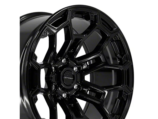 This 20x9 Defiant Wheels DF03 Gloss Black 6-Lug Wheel; 20x9; -12mm Offset is completed in a high-quality gloss black finish that will make everyone take notice. For added looks and strength, the wheel features a durable clear coat that withstands the rigors of daily driving.
