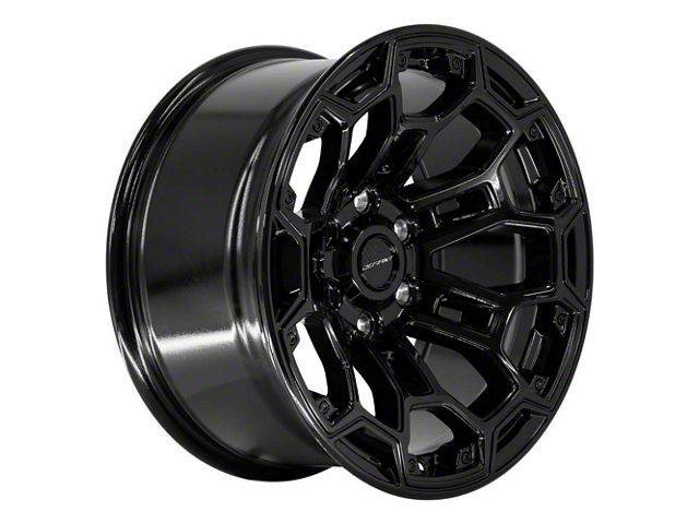 This 18x9 Defiant Wheels DF03 Gloss Black 6-Lug Wheel; 18x9; -12mm Offset is completed in a high-quality gloss black finish that will make everyone take notice. For added looks and strength, the wheel features a durable clear coat that withstands the rigors of daily driving.