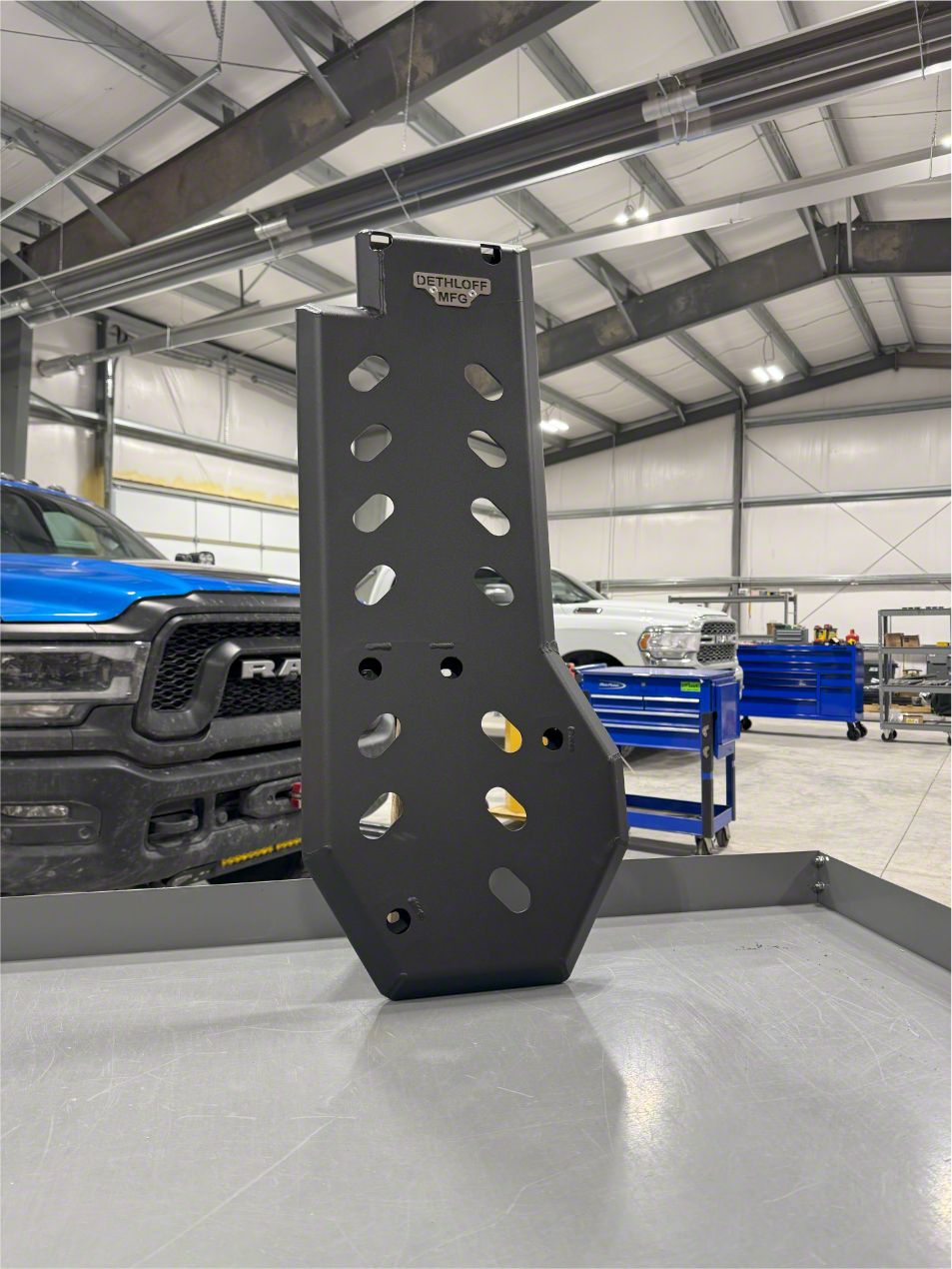 Heavy-Duty Protection. The Dethloff MFG. DEF Pump and Transfer Case Skid Plate delivers essential protection to the vulnerable DEF pump and transfer case components. Designed for off-road and rugged driving conditions, this skid plate shields critical systems from potential damage caused by rocks, debris, and uneven terrain. Whether you're navigating backcountry trails or job site obstacles, this product offers the robust defense your truck needs.