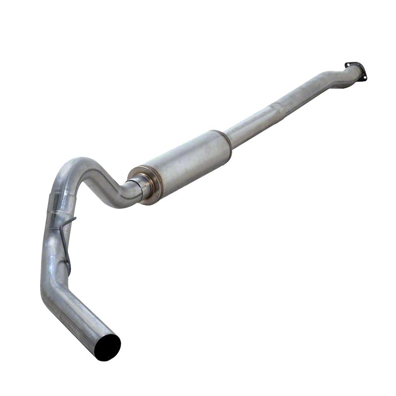 Construction and Features. This exhaust system is crafted from durable 4-inch stainless steel tubing, built to withstand tough conditions while resisting rust and corrosion. The large tubing size promotes increased exhaust flow, resulting in improved engine efficiency and a powerful, aggressive sound.