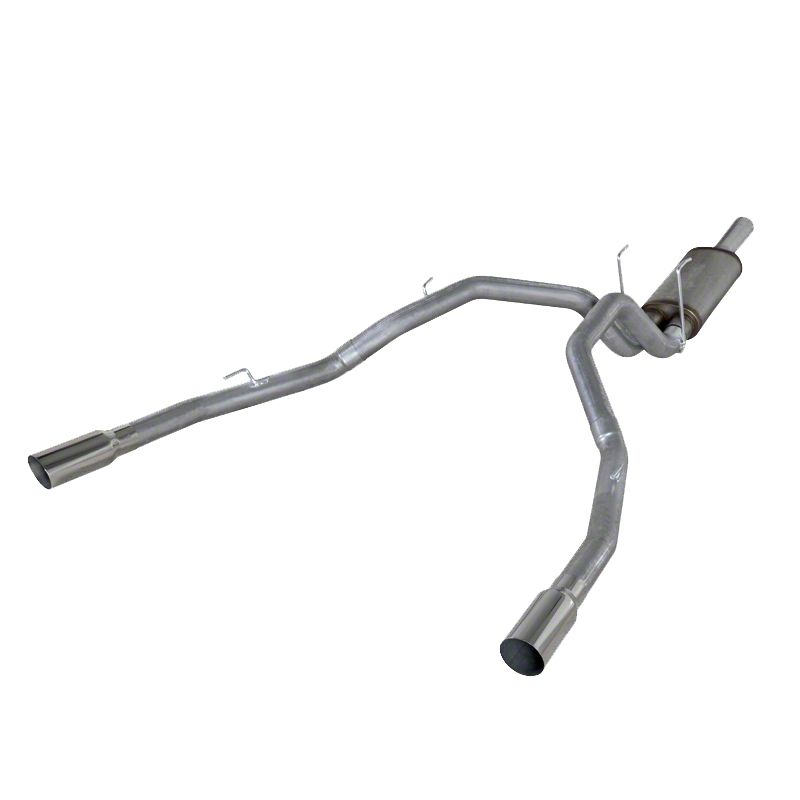 Durable Construction. This impressive system is crafted from premium 409 stainless steel material, featuring a large 3-inch main tubing for unbeatable strength and durability. Capping it off is a split rear exit and a polished tip for added flair.