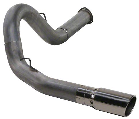 Construction and Appearance. Crafted from 5-inch T-409 stainless steel tubing, the DPF-Back Exhaust System ensures durability and resistance to corrosion. The polished chrome finish tip adds a sleek, reflective accent to your vehicle, while the robust construction guarantees long-lasting performance. This exhaust system is designed to withstand tough driving conditions and maintain its integrity over time.