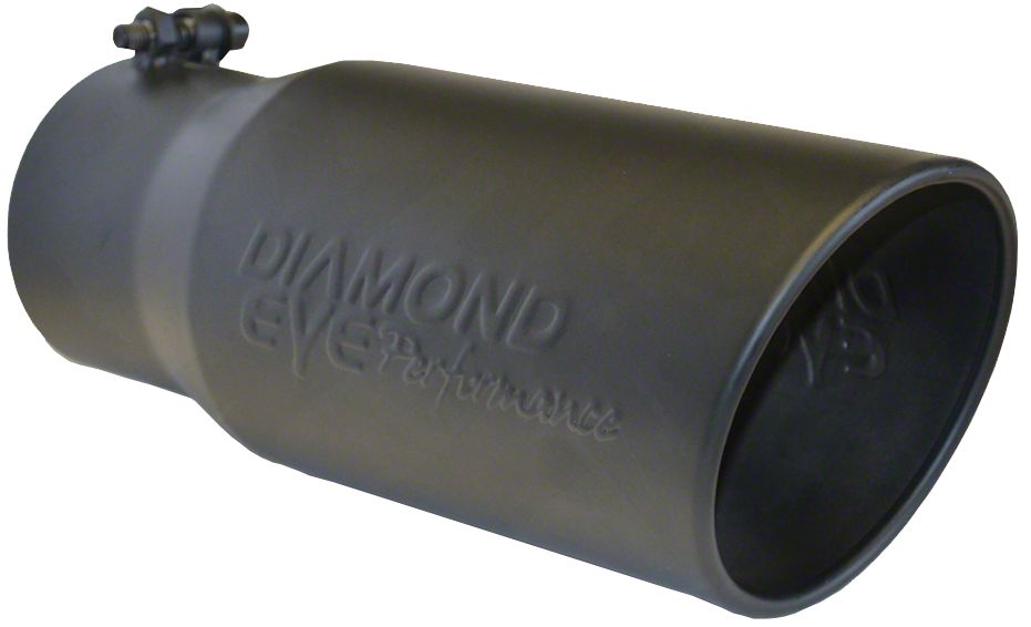 Description. 5? INLET – 6? OUTLET BLACK POWER COATED DIAMOND EYE PERFORMANCE LOGO EMBOSSED STAINLESS STEEL TIP – 12? LONG – BOLT-ON STYLE