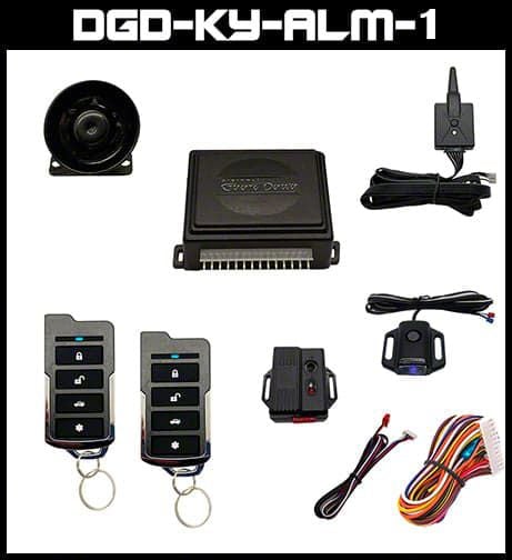 The KY-ALM-1 is a professional grade digital alarm with all the features proven most effective at stopping vehicle theft while providing unparalleled customer convenience. The systems include two 1way, Ultra Slim 5 button encrypted transmitters with extended range operation, Remote Keyless Door Entry and Trunk plus 2 additional channels for controlling Window roll up / down, Sunroof or Convertible Top up / down or anything your imagination can dream up. It includes Dual Stage Shock and Tilt Sensors, Starter Interrupt, Anti-Car Jack and much more. Built using only the highest quality components for superior performance and long life. Digital Guard Dawg car alarms give you more protection, more flexibility and more value than any other security system on the market!Full Feature Digital Alarm System with Remote Lock & Unlock plus trunk.Two 5 Button, 1-Way Ultra Slim Remote Control Transmitters with chrome side banding.Transmitters are Code Rolling / Code Hopping encrypted for superior security2500 Feet extended Range Antenna with system override switch and LEDDual Stage Shock Sensor with adjustable sensitivityTwo Auxiliary Channels can be used for Window Roll Up / Down, programmable to Pulsed, Timed and LatchedParking light Flasher has built-In Relays (Programmable for either positive or negative lights)Six tone Alarm Siren, high output 20W model that really gets attentionSeparate “Passenger only” Unlock outputUser Selectable Auto-Lock and Unlock with IgnitionInterior Light Output with Dome light supervisionAutomatic Starter Interrupt upon Lock (Relay included)Dash mounted Security Blue LED and Valet Switch in oneAuto Alarm Disarm when opening the TrunkProgrammable Three Stage Anti Car-Jack FeatureData Bus Port for easy D2D connection for ADS-ALCA bypass moduleAlarm Trigger zone IdentificationEasily upgrades to EZ TRAK, Mobile Controller and Tracking system (Plug & Play)Multi Car control with a single remoteEasy installationThe Power Door Lock Kit for 4-door vehicles includes everything you need for a seamless installation. The kit comes with 2 heavy-duty two-wire reversing actuators and a door lock module, making it easy to upgrade your vehicle with power door locks. Perfect for automotive enthusiasts looking to enhance their vehicle's security and convenience, this kit offers reliable performance and durability.Features:- 2 heavy-duty two-wire reversing actuators- Door lock module for easy installation- Compatible with 4-door vehicles- Enhances vehicle security and convenience- Reliable performance and durabilityBenefits:- Easy to install with included components- Improves vehicle security- Adds convenience with power door locks- High-quality materials ensure long-lasting useProudly Designed, Engineered, and Assembled in USA