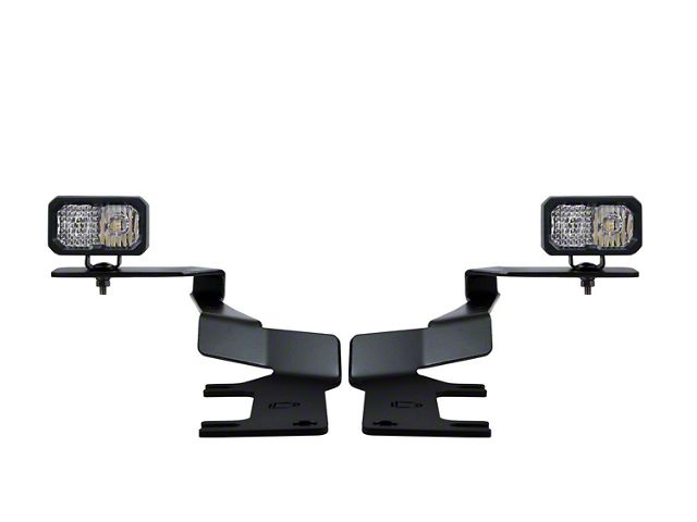 Perfect fitment. The Stage Series Backlit Ditch Light Kit compatible with the Ford Super Duty 2017+ allows you to easily mount two SS3 SSC2 or SS5 Backlit Pods above the hood. These application-specific brackets were CAD-designed to install using factory mounting points. No cutting or drilling required! This kit features a low profile design while minimizing glare and will not interfere with raising or lowering the hood.