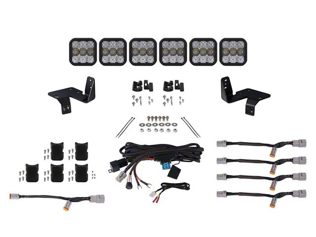 Perfect Fitment. The Grille CrossLink Lightbar Kit compatible with Ford Super Duty 2020-2022 from Diode Dynamics allows you to mount six linked SS5 LED pods on the factory grille. These application-specific brackets were CAD-designed to bolt into place using factory mounting points on the grille. No cutting or drilling required!