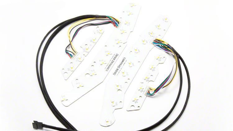Advanced Illumination. The Diode Dynamics RGBWA Multicolor Daytime Running Light LED Board Kit elevates the aesthetic and functionality of your vehicle's lighting. By converting the parking lights to RGBWA, it allows for a customizable multicolor display along with a cool white running light function, retaining the amber turn signal lights for compliance. Control is seamless via a smartphone with a Bluetooth controller, enhancing both convenience and visual appeal.