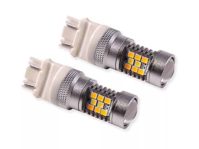 Enhanced Visibility and Style. Equip your vehicle with a powerful pair of turn signal light bulbs for added visibility, safety, and style. Using these 3157 HP24 Cool White / Amber Switchback Turn Signal Light LED Bulbs from Diode Dynamics will enhance your safety and give your vehicle a more aggressive exterior. The bright LEDs offer improved visibility, especially when preparing to change directions. Additionally, the modern dual-color switchback bulbs give your turn signal lights a stylish appeal.