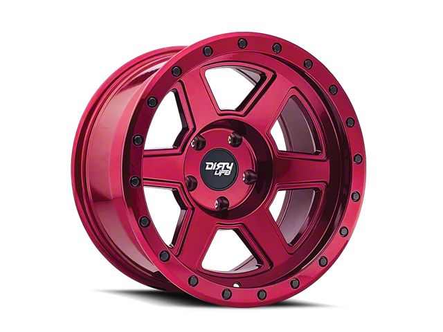 Dirty Life Compound Crimson Candy Red 8-Lug Wheel; 20x10; -25mm Offset. The Dirty Life Compound Crimson Candy Red 8-Lug Wheel offers a striking balance of style and refinement. Its unique design accentuates the vehicle's aesthetic, while the premium construction underscores its robust nature. This wheel is a perfect choice for those seeking both elegance and a strong visual statement.