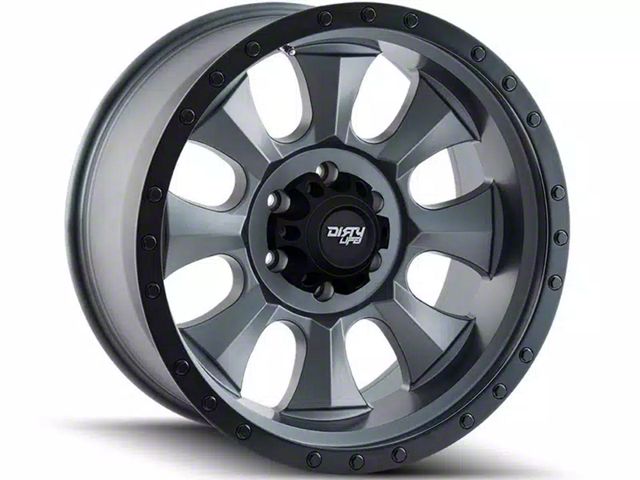 Dirty Life Ironman Matte Gunmetal 6-Lug Wheel; 17x8.5; 6mm Offset. The Dirty Life Ironman Matte Gunmetal 6-Lug Wheel offers a striking balance of style and refinement. Its unique design accentuates the vehicle's aesthetic, while the premium construction underscores its robust nature. This wheel is a perfect choice for those seeking both elegance and a strong visual statement.