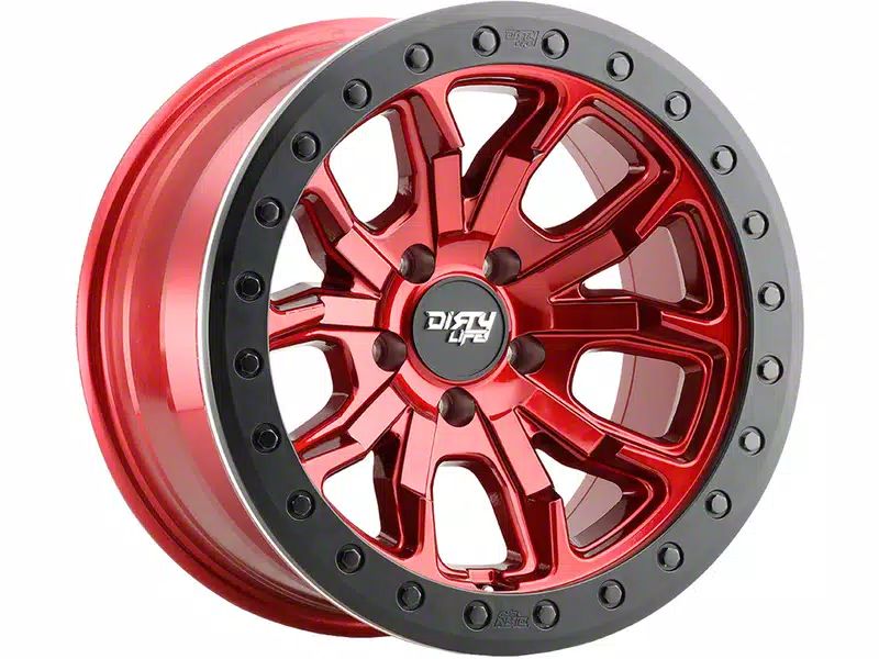 Dirty Life DT-1 Crimson Candy Red 5-Lug Wheel; 17x9; -12mm Offset - Enhance your vehicle's style with the Dirty Life wheel. This wheel's distinctive design and finish complement your vehicle's aesthetics, making a bold statement. It's crafted to accentuate the unique character of your car, emphasizing a premium and robust appeal.