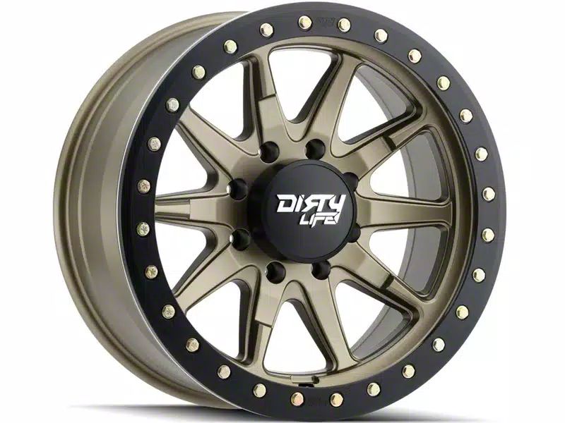 The 17x9 Dirty Life DT-2 Satin Gold 8-Lug Wheel underwent a thorough finishing process to make sure the wheel not only looks great, but that it can also handle the rigors of driving.