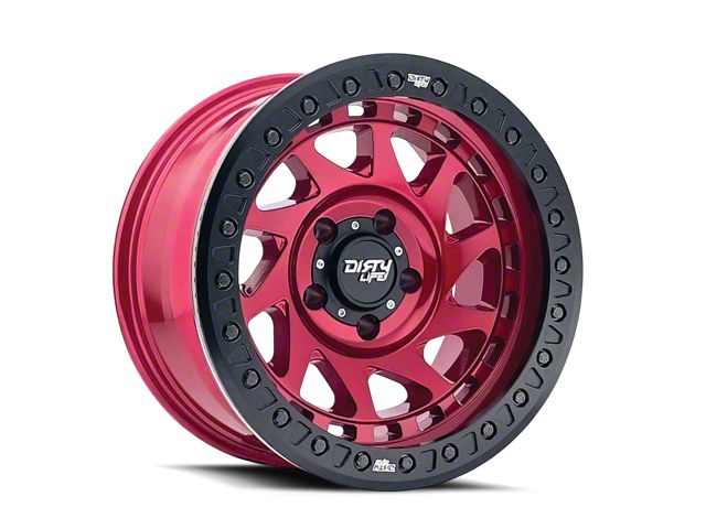 Dirty Life Enigma Race Crimson Candy Red 6-Lug Wheel; 17x9; -38mm Offset exudes sophistication with its finish, offering a sleek and modern appeal to any vehicle it adorns. The design is meticulously crafted to enhance the aesthetic of your vehicle, giving it a distinctive and upscale look. Perfect for those seeking to elevate their vehicle's style, this wheel blends seamlessly with both contemporary and classic vehicle designs, making it a versatile choice for a wide range of vehicles. Its robust construction ensures durability, making it a reliable choice for drivers who value both style and quality.