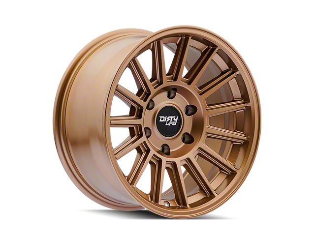 This 17x8.5 Dirty Life Journey Satin Bronze 6-Lug Wheel is completed in a high-quality striking bronze finish that will be the envy of everyone. There's a durable clear coat that protects against driving hazards.
