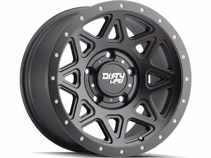 This 20x9 Dirty Life Theory Matte Black 6-Lug Wheel is completed in a high-quality matte black finish that stands out immediately. There's a durable clear coat that protects against the hazards of driving.