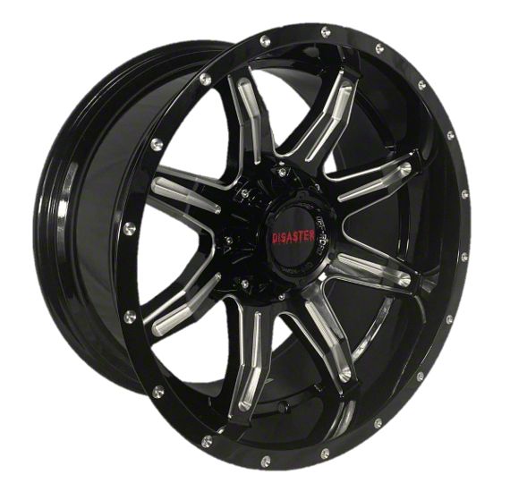 The 20x10 Disaster Offroad D02 Gloss Black Milled 6-Lug Wheel is completed in a high-quality gloss black finish, with steel milled accents. Thanks to a durable clear coat, the finish looks amazing and also protects against the rigors of driving.