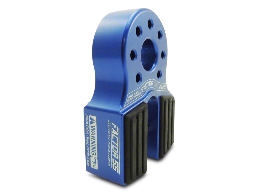 Extremely Tough. Finished with a metallic blue hard powder-coat that makes it even more corrosion-proof, the Factor 55 FlatLink is made in the USA and comes with a 1-year limited warranty. Carved via CNC machining out of military quality 6000 series aluminum, the FlatLink is lightweight at 23 ounces but very tough, with a maximum load of 16,000 lbs. and ultimate failure beyond 40,000 lbs. The EPDM rubber guards, which can be removed if needed, protect the fairlead from damage.