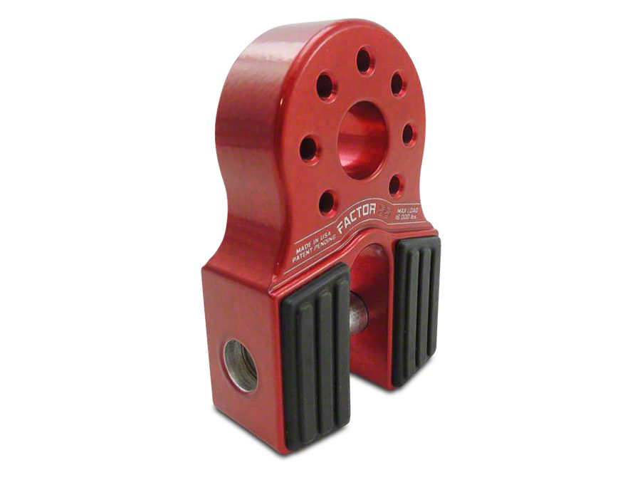 Built to Work Hard. The Factor 55 FlatLink is made tough, machined out of 6000 series aluminum to extremely tight tolerances. Weighing just 23 ounces, this USA-made shackle mount is finished with bright red powder-coat for extra corrosion proofing. The shear pin can be removed and installed with a simple snap ring, and is 5/8" in diameter, fabricated from grade 5 steel. EPDM rubber guards shield the fairlead from scrapes and scratches. The part is warranted for 1 year.