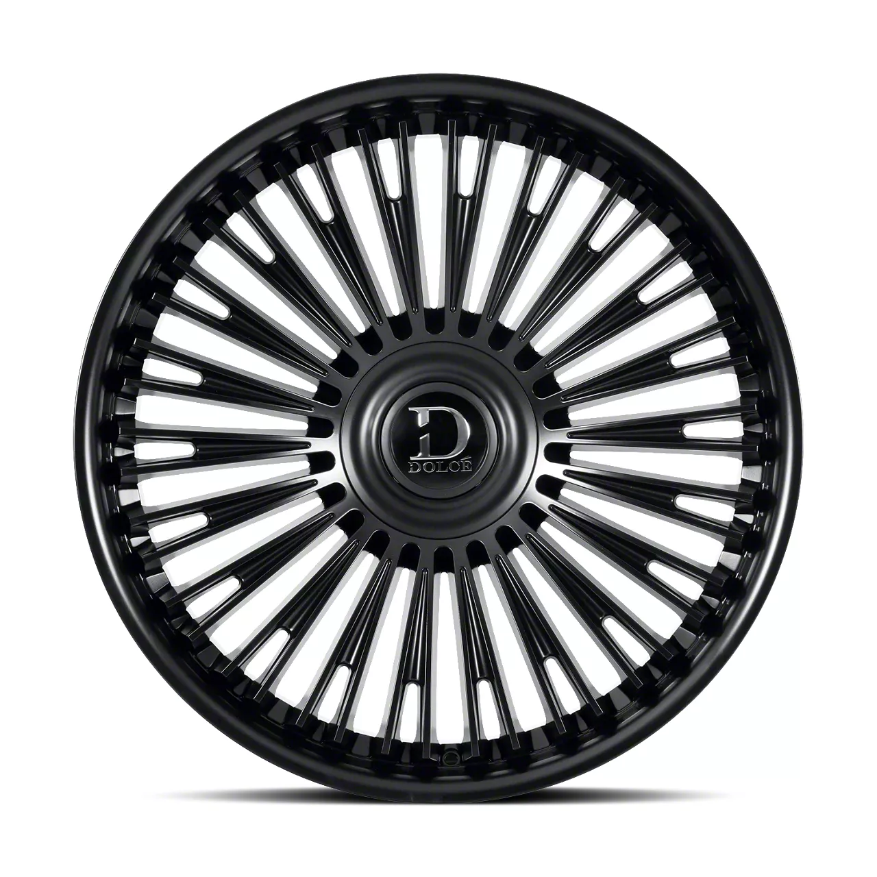 The 24x10 Dolce Luxury Razzo Glossy Black 6-Lug Wheel is completed in a high-quality gloss black finish. For added protection and good looks, this Wheel features a durable, matte clear coat that is tough enough to stand up against the hazards of everyday driving.