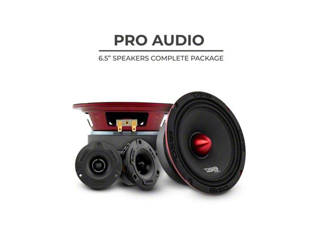 Powerful Audio Upgrade for Crisp Sound. The DS18 PRO Complete Speaker Package is designed to transform your audio system with high-quality sound and impressive performance. Featuring 6.50-inch mid-range speakers and 3.78-inch super bullet tweeters, this kit ensures a balanced, crisp, and clear tone. Its matte black and metallic red finish adds a stylish touch to your vehicle’s interior.