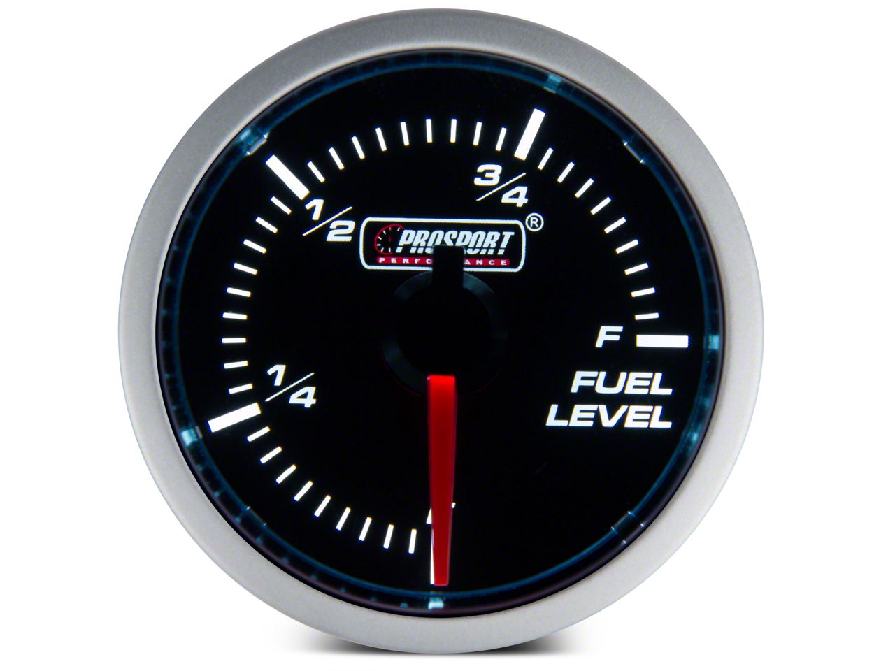 Fuel Level. The Performance Fuel Level Gauge measures 52mm (2-1/16") and features a 270° sweep that will accurately measure and display the fuel level in your gas tank: E, 1/4, 1/2, 3/4 and F. The fuel level sensor sensitivity switch on the back of your gauge will need to be set to match the ohm value of your F-150's fuel level sensor.