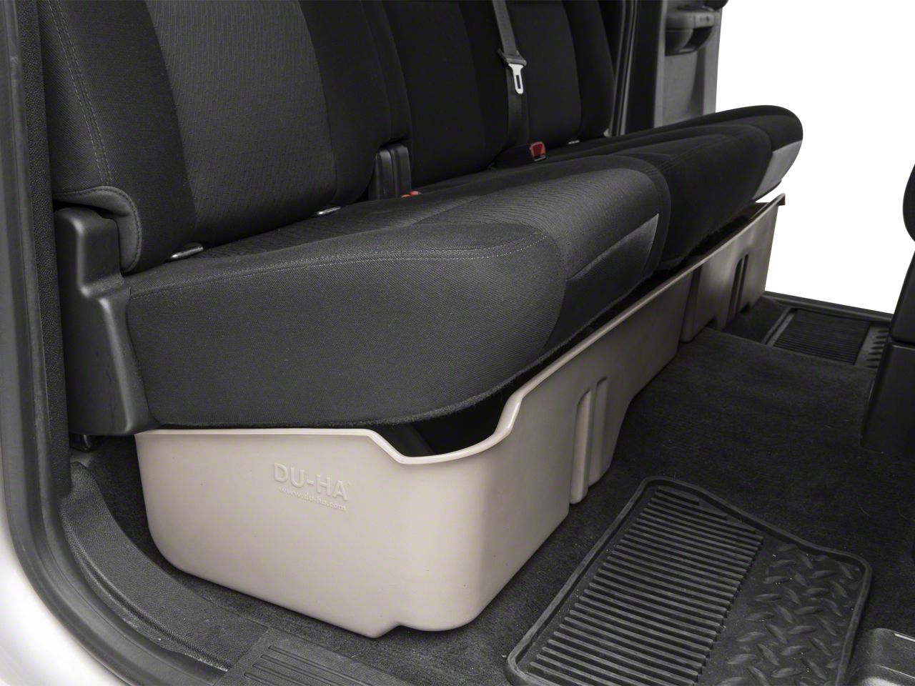 Keeps Valuables Stored Out of Sight. This DU-HA Underseat Storage container keeps your belongings safe and hidden. It fits neatly under the rear seat of your truck to conceal it from prying eyes. The underseat location is also convenient because it doesn’t take up space in your cab. Best of all, the container can be used as a legal gun case in many states. A built-in gun rack is included in the box. It’s the best way to store your stuff.