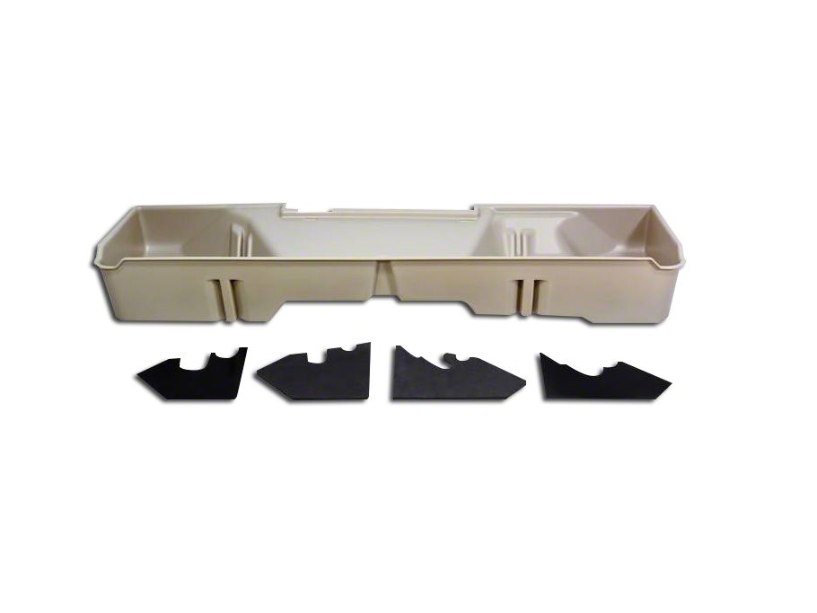 Handy Storage. The Du-Ha Underseat Storage is constructed from heavy-duty polyurethane and is tan colored to match your Silverado’s interior. This storage unit can also double as a gun carrier in most states, as it can hold two rifles or shotguns.