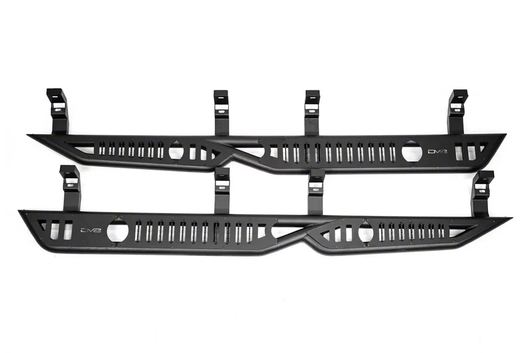 Reliable Side Steps. The DV8 Offroad OE Plus Series Side Step Bars are designed to give you a safer and more secure way to enter and exit your truck. Built for strength and convenience, these step bars not only enhance accessibility but also provide additional protection from trail obstacles.