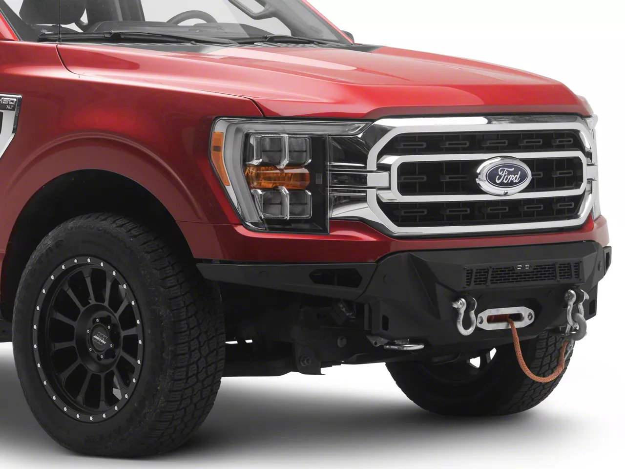 Off-Road Front Protection. The DV8 Offroad Spec Series Bumper is built for maximum front-end defense and rugged utility. Designed for 2021-2023 Ford F-150 Models—excluding Raptor trims—this bumper offers essential trail-ready enhancements like a full front skid plate, heavy-duty winch mount, and D-ring mounts. It's a formidable solution for drivers looking to fortify their truck while integrating lighting and recovery options.