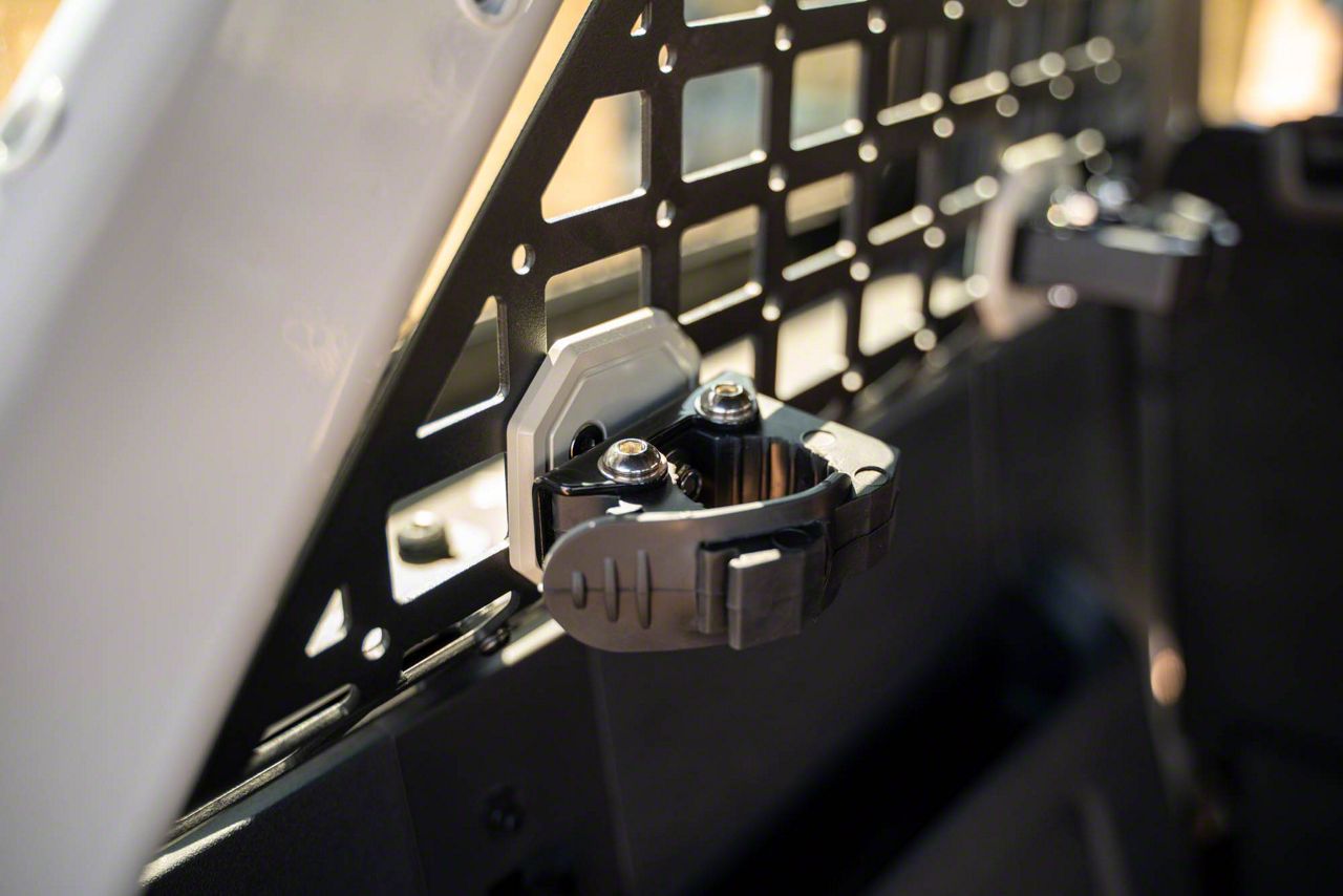 Versatile Molle Panel Tool Mounts. The DV8 Offroad Quick Release Molle Panel Tool Mounts are designed for easy, quick-access storage of essential equipment, whether installed on interior or exterior Molle panels. Featuring a glossy gray finish, this tool mount set offers both style and practicality, keeping tools and gear securely in place on 2mm+ thick Molle panels.