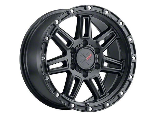 DX4 Wheels REBEL Flat Black 6-Lug Wheel; 17x8.5; -6mm Offset. The DX4 Wheels REBEL Flat Black 6-Lug Wheel offers a striking balance of style and refinement. Its unique design accentuates the vehicle's aesthetic, while the premium construction underscores its robust nature. This wheel is a perfect choice for those seeking both elegance and a strong visual statement.