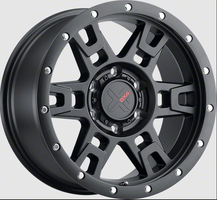 DX4 Wheels TERRAIN Flat Black 6-Lug Wheel; 18x9; 12mm Offset showcases an exquisite blend of elegance and charisma, perfect for any vehicle aiming for that standout appearance. With its unique design, it not only amplifies the aesthetic appeal of your ride but also complements various vehicle styles. This wheel, stemming from the legacy of DX4 Wheels, embodies a premium look that's hard to resist.