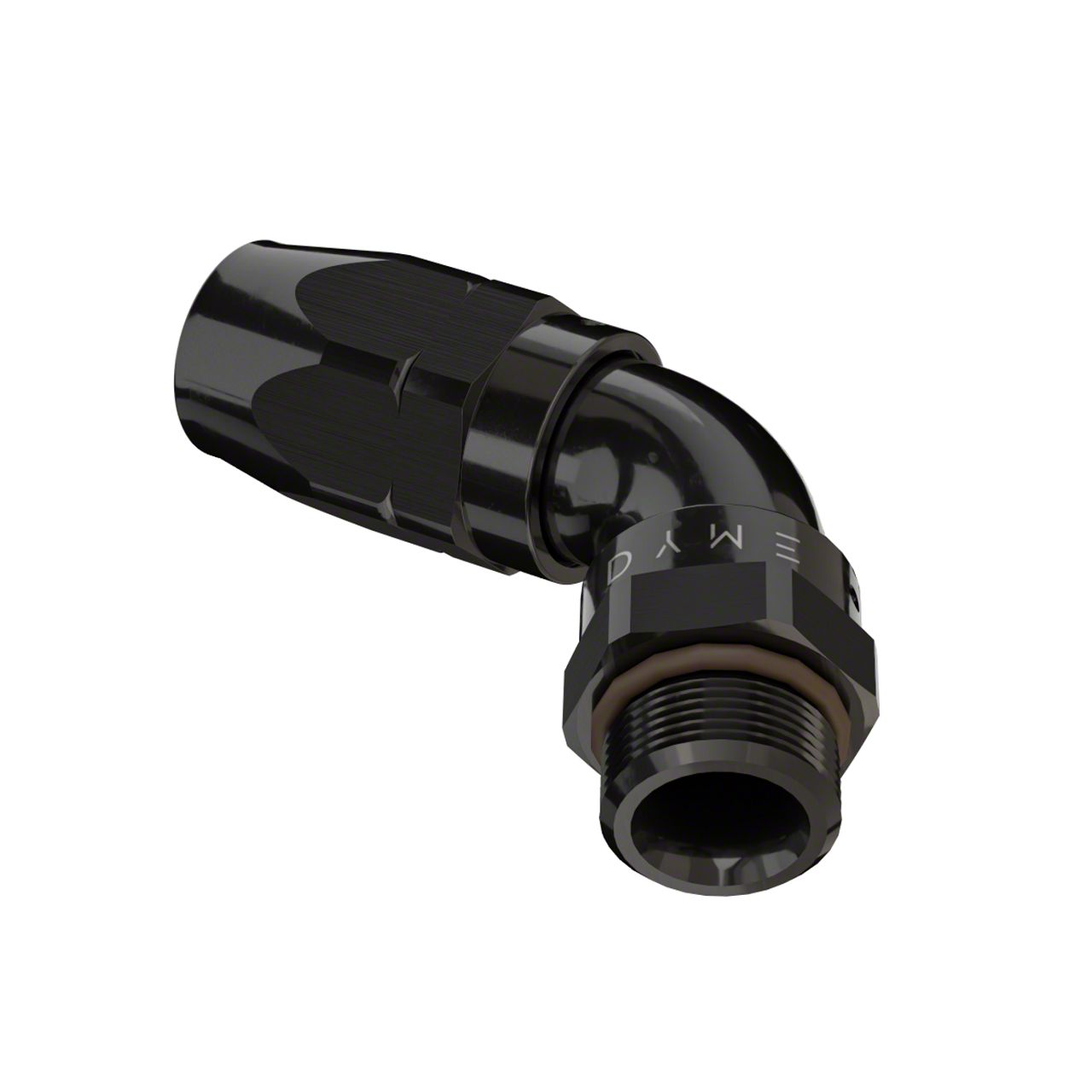 C-TYPE FATBOY ORB (SAE) 1-PIECE THICK TUBE, NO WELD, REUSABLE FITTING, WITH DUAL SEAL FKM SWIVEL ANGLE ADJUSTMENT, COMPATIBLE WITH SUPERSTRASSE CPE (REUSABLE TYPE) RUBBER HOSE TYPES, ANGLES STRAIGHT THROUGHT 180 DEGREE. 6061-T6 BILLET ALUMINUM, BLACK ANODIZED BODY.