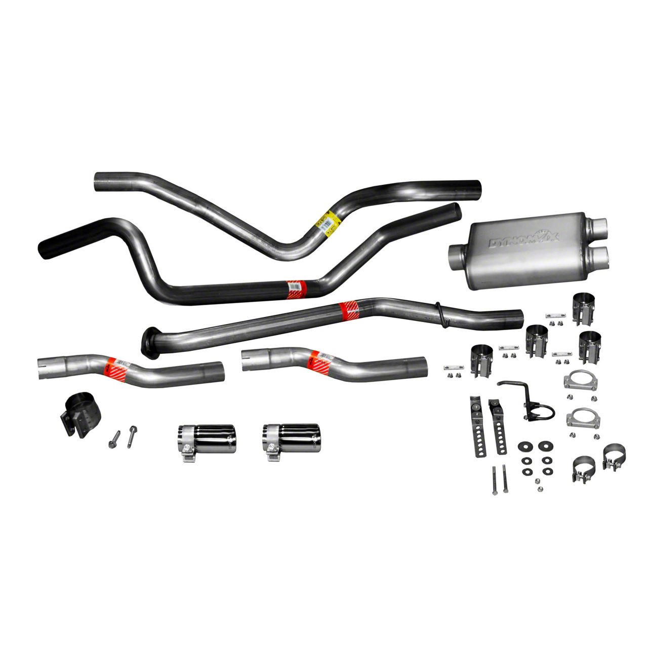 Heavy-Duty Construction. Built for long-lasting functionality, this Dual Exhaust System with Polished Tips is made of ultra-smooth, 3-inch, and 2.50-inch, mandrel-bent stainless steel tubing. The stainless steel construction withstands the highly corrosive exhaust chemicals and the extreme temperatures caused by the intense catalytic activities. To complete this exhaust kit, a pair of polished, stainless steel exhaust tips accentuate your truck’s rear end.