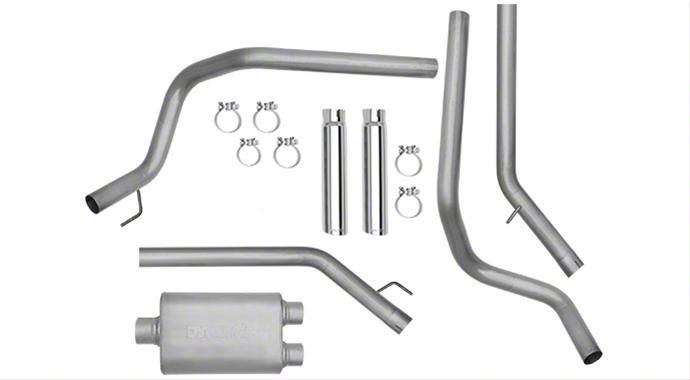 Quick and Simple to Install. This dual exhaust system comes with all the required mounting hardware to ensure quick and simple installation. It attaches to your truck using its stock mounting points in about an hour.