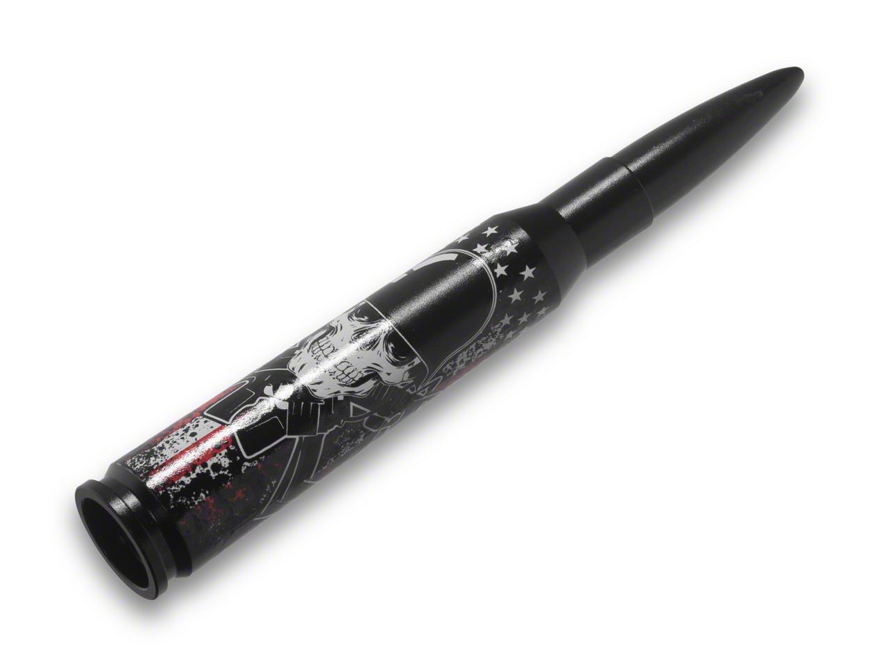 Bold Aesthetic. Elevate the style and functionality of your vehicle with the EcoAuto Bullet Antenna; American Skull Black. This accessory not only adds a unique and bold aesthetic touch to your vehicle but also provides practical benefits. With built-in anti-theft thread locking integration, this antenna is a must-have upgrade for Jeep enthusiasts.