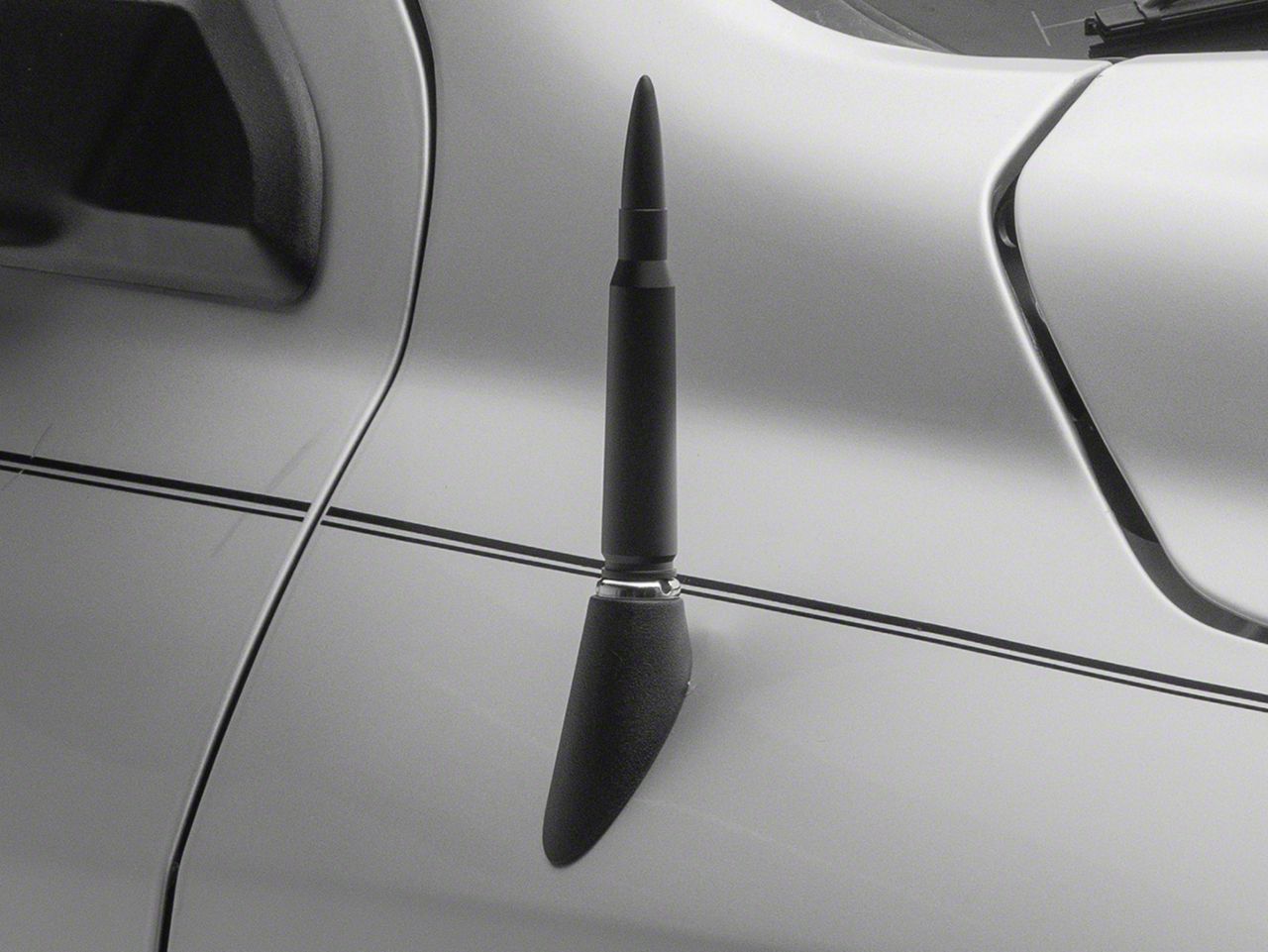 Functional and Bold Styling. Introducing the ECOAuto Bullet Antenna in a rugged matte black finish! This antenna boasts a 50 Caliber Bullet-Style Design that's sure to catch eyes and turn heads. With the same dimensions as a real 50 Caliber Bullet, it adds a bold and unique statement to your vehicle.