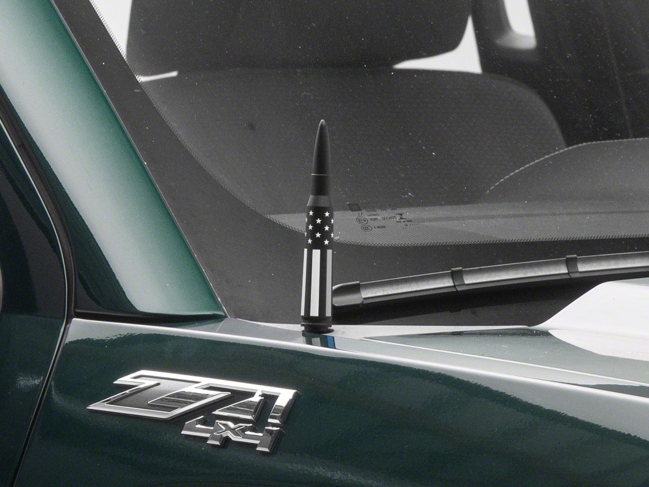 Description. ADD ATTITUDE: This replacement radio antenna will surely set your truck apart from all the rest! Replace your long, boring antenna with a 50 Cal Bullet Antenna and add some series attitude to your rig. This Antenna has the same dimensions as a real 50 Caliber Bullet!