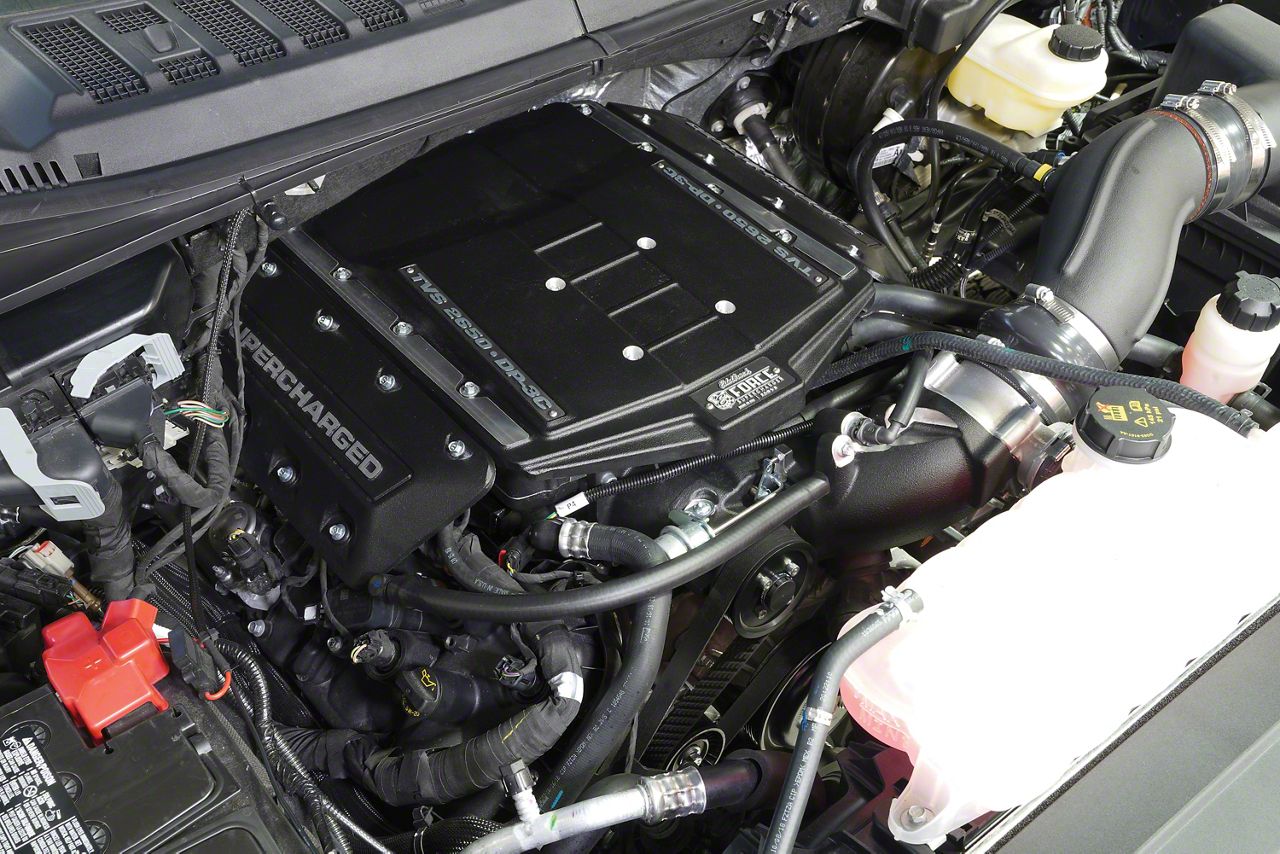 Performance like a Beast. The Edelbrock E-Force Stage 1 Street Supercharger Kit without Tune delivers breathtaking power to the F-150 to the tune of 690 horsepower and 588-pound-feet of torque, led by Eaton R2650 Twin Vortices Series rotors, Dual-Pass 3 Core high-capacity air-to-water intercooler, and an inverted design for improved low-end torque.