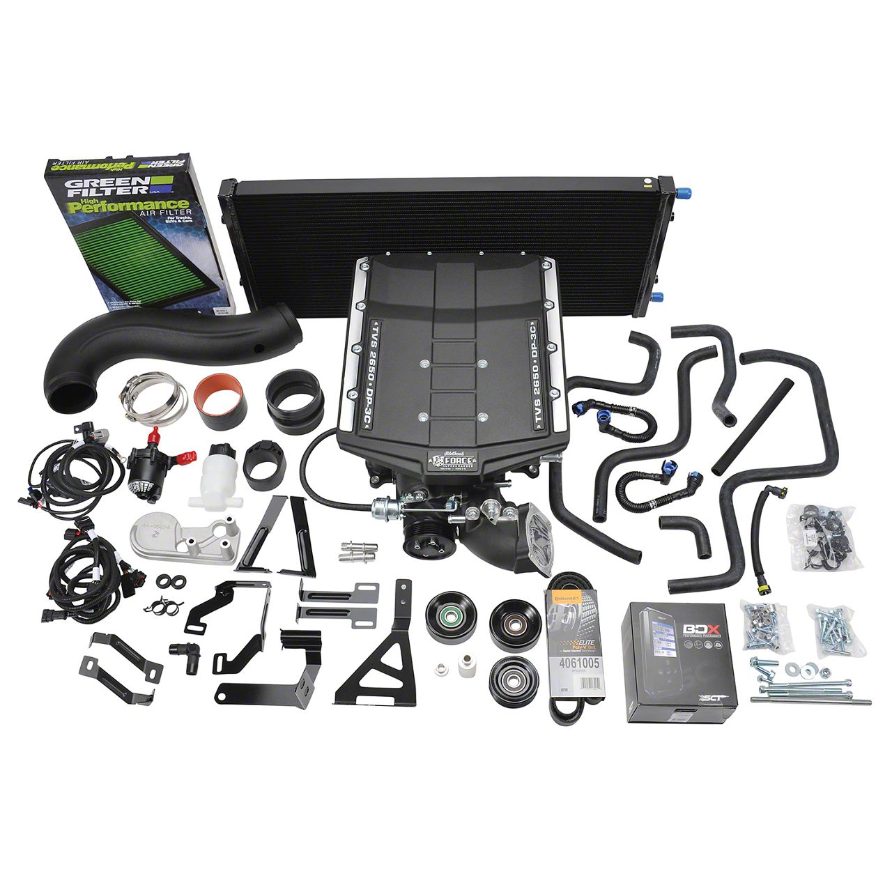 High-Quality Assembly. This E-Force Stage 1 Street Supercharger Kit is composed of high-quality parts for enhanced performance. It features a self-contained lubrication system with a 100,000-mile service interval and a high-capacity Dual-Pass 3-Core (DP3C) integrated intercooler. It sports a durable, black, powder-coated finish for reinforced corrosion resistance and added visual appeal. This E-Force Kit also includes a large liquid-to-air intercooler, belt tensioner, a complete set of preformed hoses, hardware, and wiring harnesses.